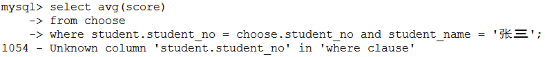 -> where student.student_no = choose.student_no and student_name = '张三';