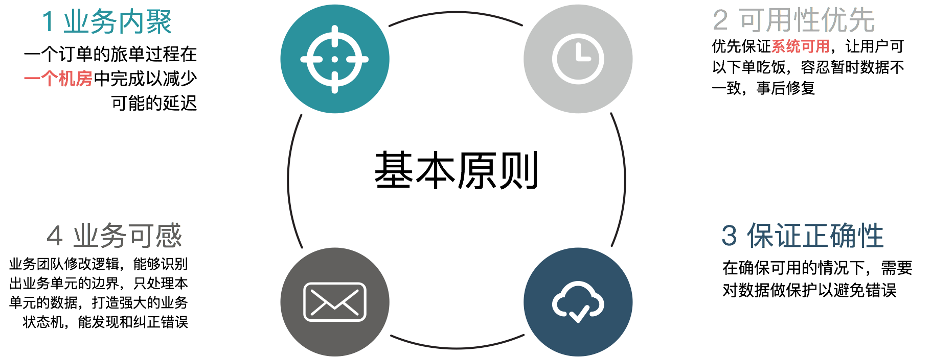 进过反复讨论,我们的多活架构通过遵循以下几条基本原则,来满足这两个核心特性: