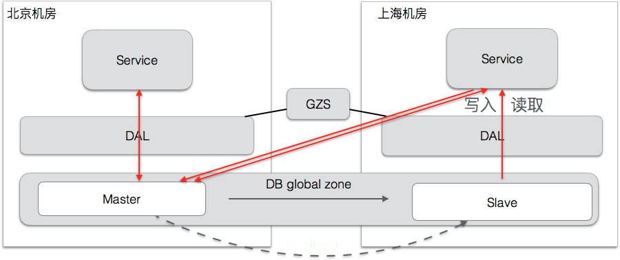 对于个别一致性要求很高的应用,我们提供了一种强一致的方案(Global Zone),Globa Zone是一种跨机房的读写分离机制,所有的写操作被定向到一个 Master 机房进行,以保证一致性,读操作可以在每个机房的 Slave库执行,也可以 bind 到 Master 机房进行,这一切都基于我们的数据库访问层(DAL)完成,业务基本无感知。