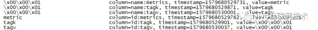 - metric, tagK, tagV:实际存储的是字符串对应的UID(在tsdb-uid表中)