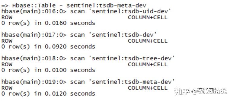 发现HBase里面有数据,在tsdb-uid、tsdb、和 tsdb-meta 表里面有数据,而tsdb-tree 表里面没任何数据,下面我们针对这些数据做一下具体分析。