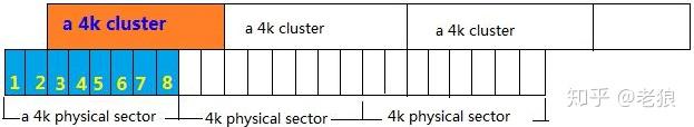 4k的对齐对于NAND闪存来说十分重要,可以避免不必要的读写。而旧的硬盘的Sector都是512个字节,后期虽然扩展出4K的sector,但并不能保证这个4K的sector是4K对其的。于此同时NTFS格式的缺省Cluster大小也是4KB。这就意味着如果不能4K对其,使用SSD效果会变得十分有限,如下图: