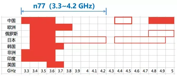 因为不同国家的运营商,在C波段的可用频率范围不同,所以n77干脆将这些范围全部包括进来,都算上。