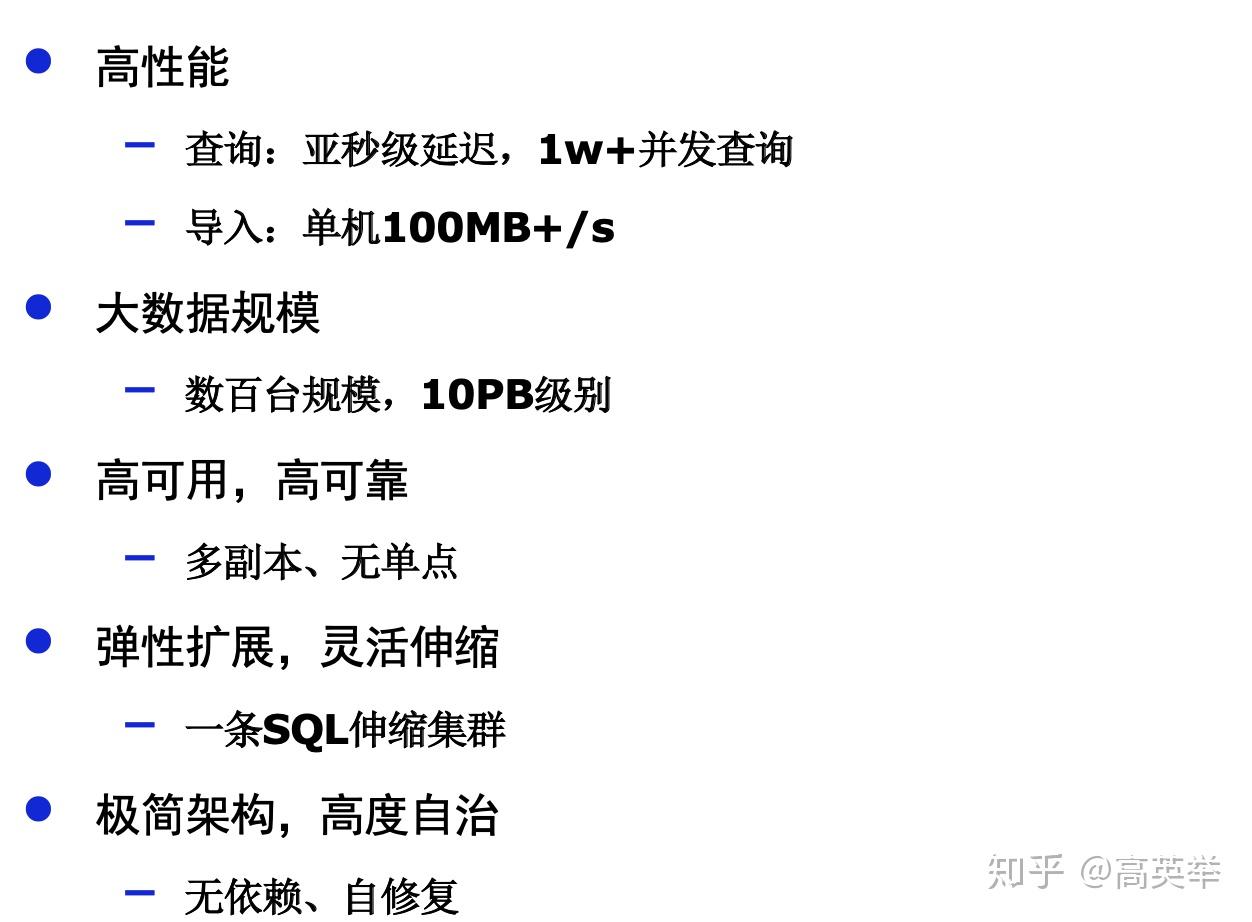 用Elasticsearch作为OLAP引擎,有几项优势:(1)擅长高QPS(QPS > 1K)、低延迟、过滤条件多、查询模式简单(如点查、简单聚合)的查询场景。(2)集群自动化管理能力(shard allocation,recovery)能力非常强。集群、索引管理和查看的API非常丰富。