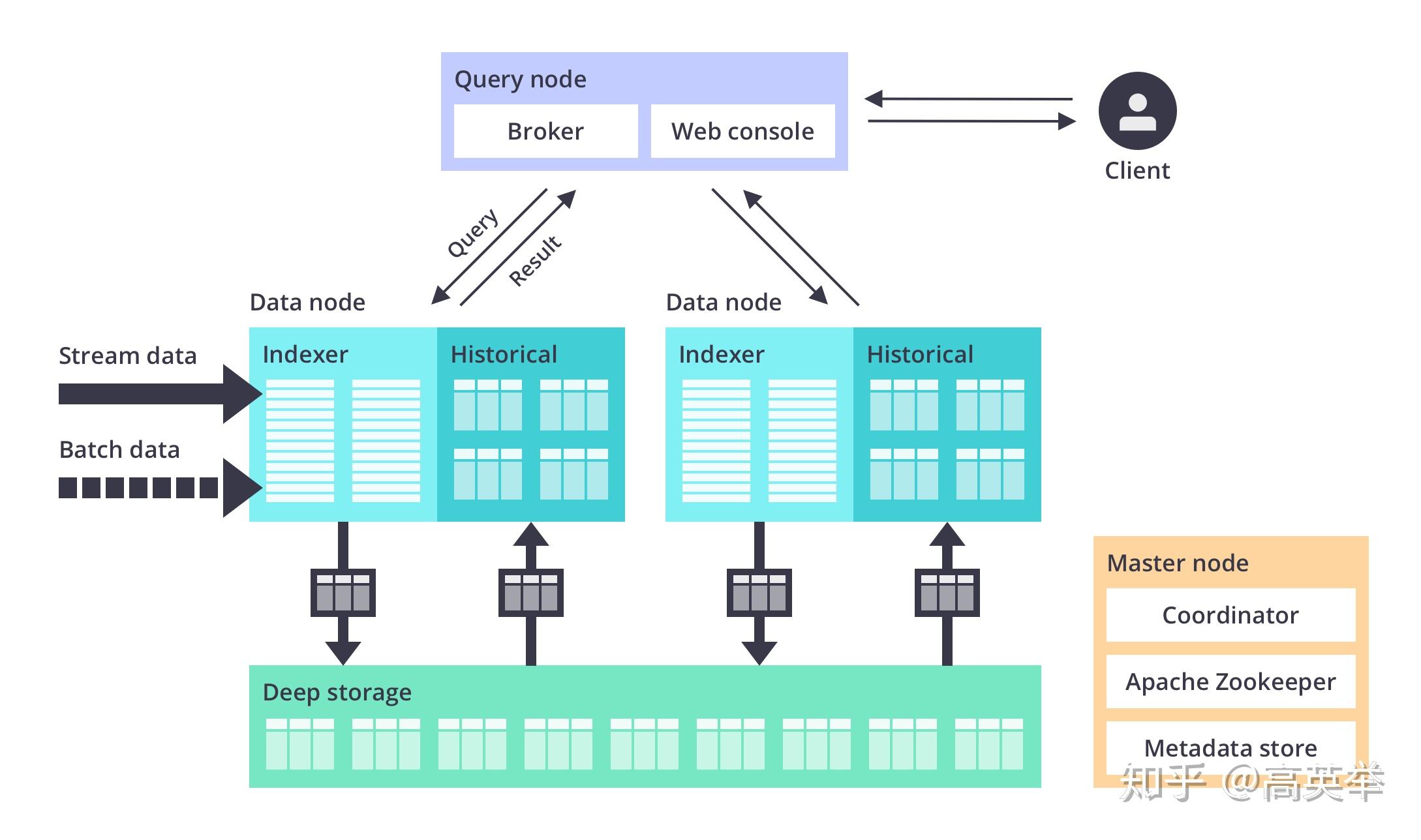- Druid支持低延时的数据插入、更新,但是比hbase、传统数据库要慢很多