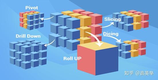 下面所述几种OLAP操作,是针对Kimball的星型模型(Star Schema)和雪花模型(Snowflake Schema)来说的。在Kimball模型中,定义了事实和维度。可以参考:http://webdataanalysis.net/web-data-warehouse/multidimensional-data-model/