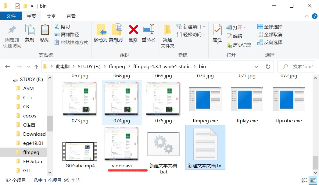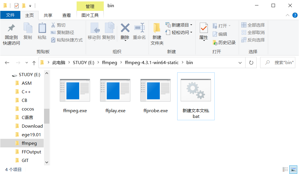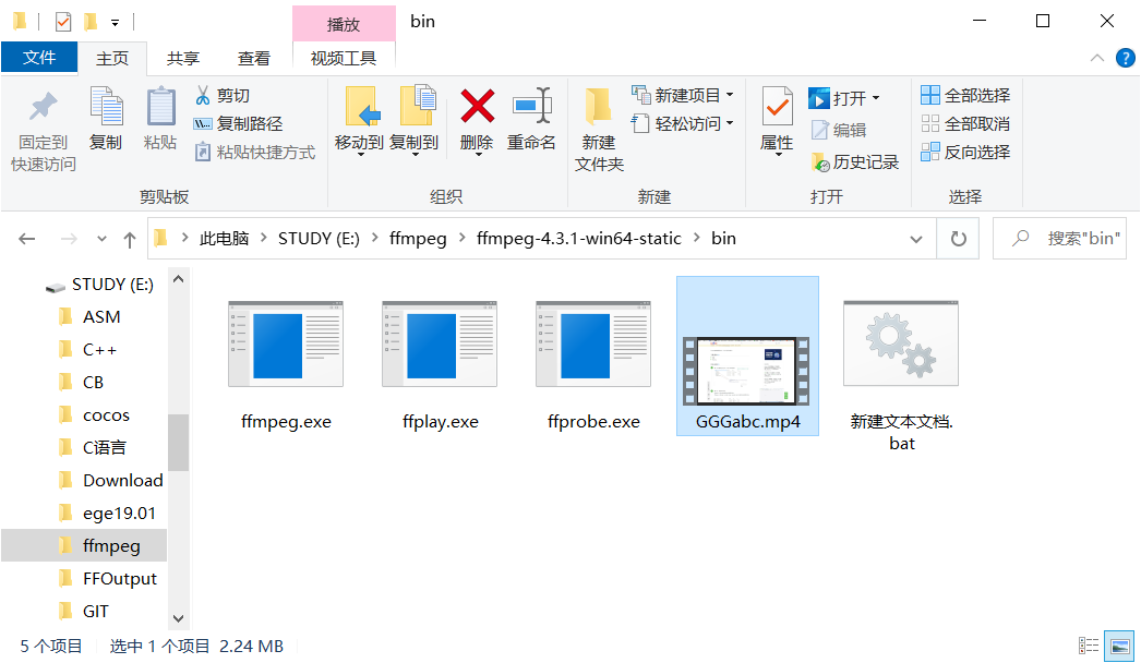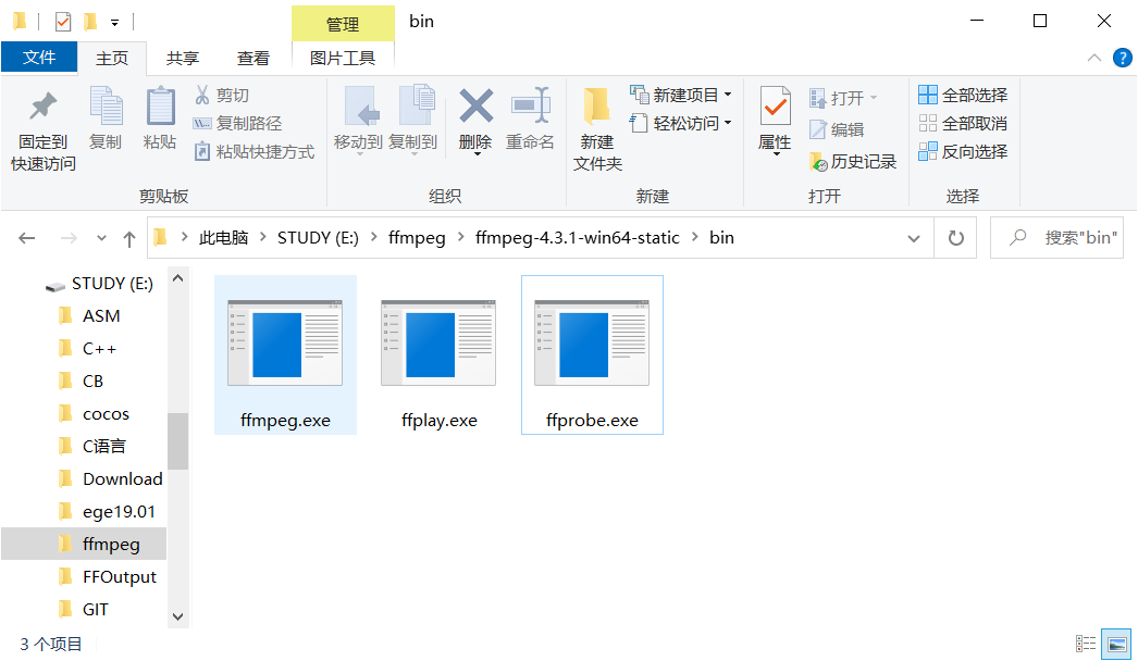 你可以在ffmpeg的bin文件下看见以下三个.exe文件